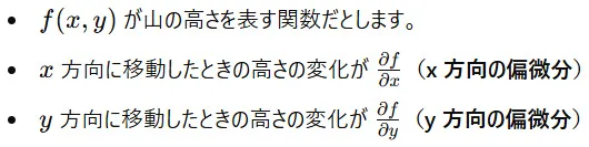 偏微分の概念を直感的に理解するために、山の地形を考えてみましょう。