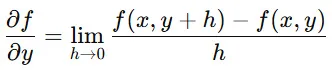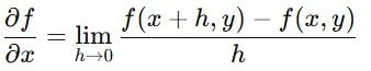 ある関数 f(x,y)の x に関する偏微分は、以下のように定義されます。