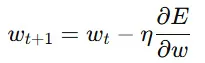 - ∂E∂w\frac{\partial E}{\partial w} は誤差関数の偏微分(勾配)