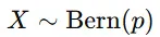 確率変数 X がベルヌーイ分布 Bern(p)に従う場合、その期待値(平均) と 分散 は次のように求められます。